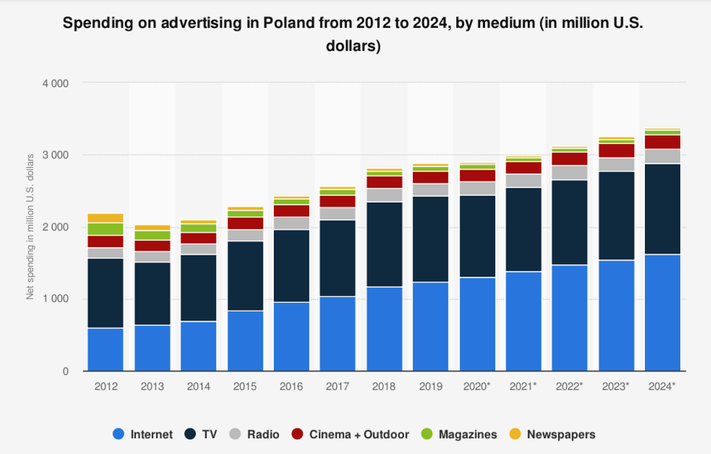 Для порівняння ось дані (тільки по медійній частині) щодо рекламного ринку Польщі, з якою нас так люблять порівнювати: